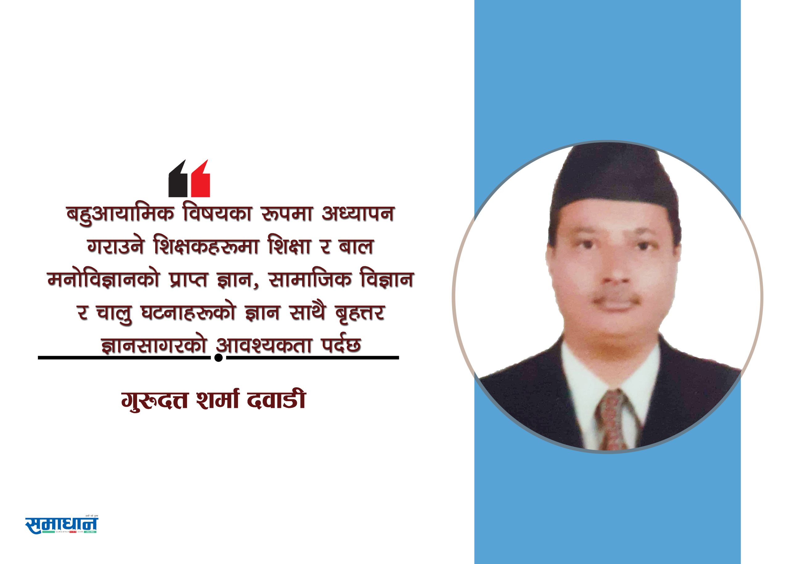 बहुआयामिक विषयका रूपमा अध्यापन गराउने शिक्षकहरूमा शिक्षा र बाल मनोविज्ञानको प्राप्त ज्ञान, सामाजिक विज्ञान र चालु घटनाहरूको ज्ञान साथै बृहत्तर ज्ञानसागरको आवश्यकता पर्दछ
