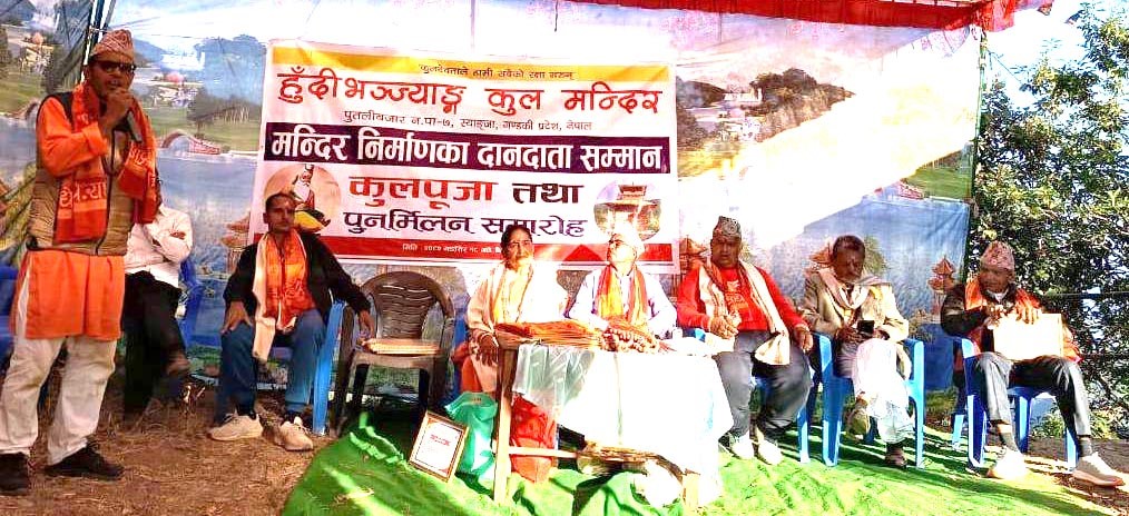 स्याङ्जाको पुतलीबजार नगरपालिका ७ हुँदीभन्ज्याङमा निर्माण हुँदै गरेको कुल मन्दिरका दातालाई सम्मान गरिएको छ । ३ दिवसीय समारोहबीच मन्दिरका लागि १४ आना जग्गा दान गर्ने पदम/सीता रानाभाट र नगद ३ लाख दान गर्ने लक्ष्मी पौडेललाई विशेष सम्मान गरिएको हो ।