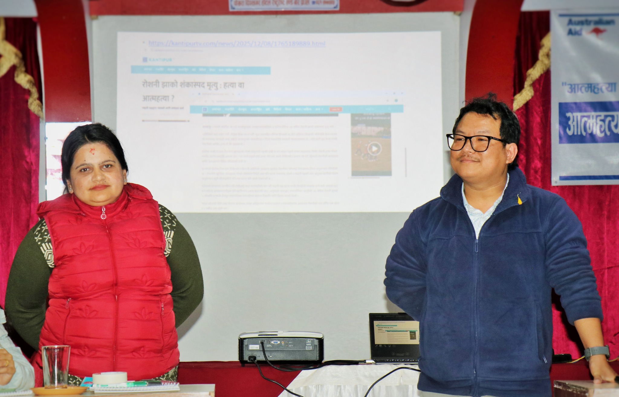 कोसिस नेपालको आयोजनामा पोखरामा भएको आत्महत्या रोकथामसम्बन्धी कार्यक्रममा कोसिस नेपालका मनोविद् विजय राईले आत्महत्या सम्बन्धी समाचार प्रकाशन गर्दा सनसनी नबनाइ संवेदनशिल भएर प्रकाशन गर्न पत्रकारलाई आग्रह गरे ।