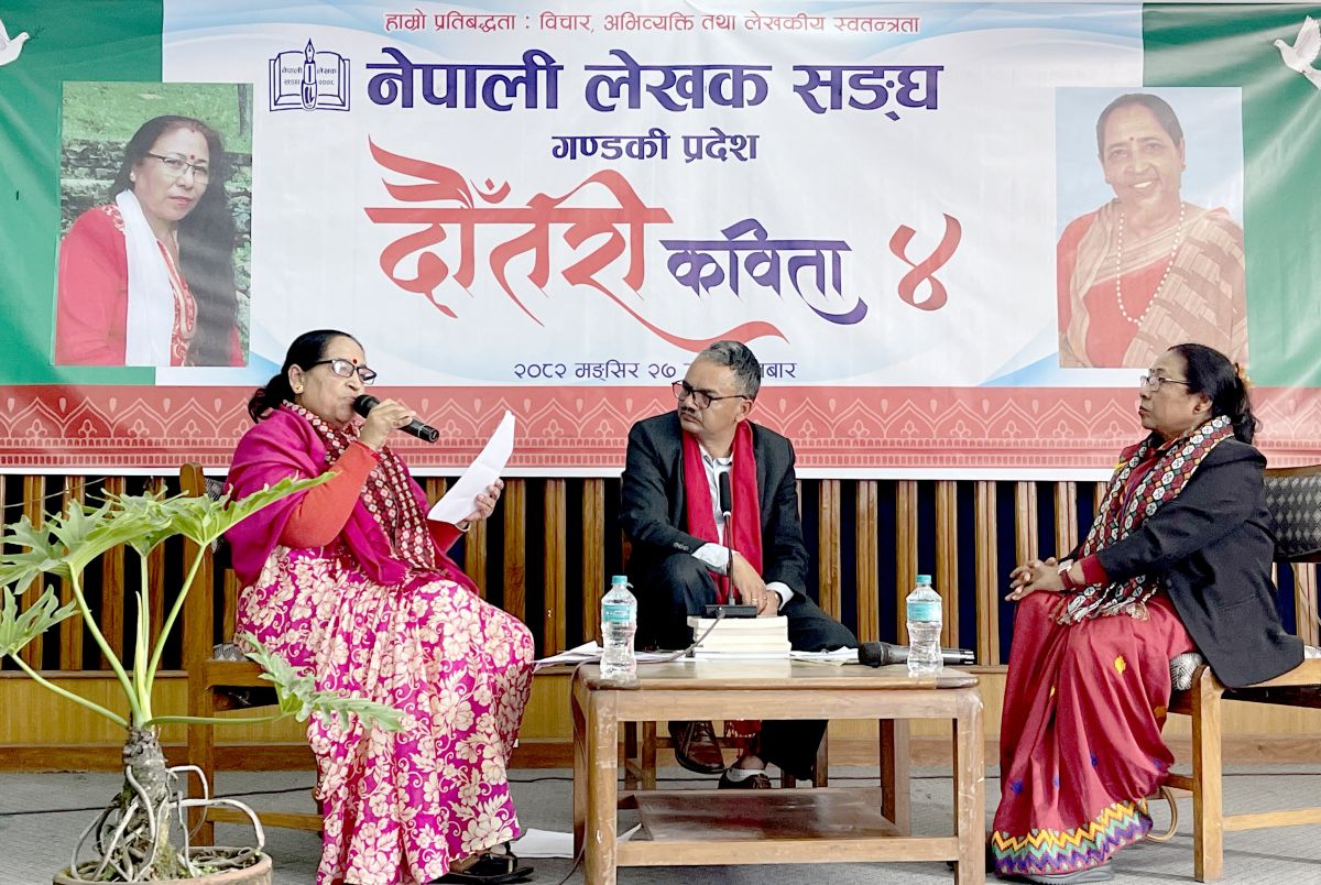 शनिबार पोखराको मौसम जति चिसो थियो, नेपाली लेखक संघ गण्डकीले जुराएको ‘दौंतरी’ को चौथो शृंखला उति नै न्यानो । मञ्चमा थिए– लोकभाकाकी रानी हरिदेवी कोइराला र शब्दकी साधिक सरस्वती श्रेष्ठ ‘सरू’ । उमेरको सिँढीमा हरिदेवी केही खुड्किला माथि भए पनि सिर्जनाको क्षितिजमा यी दुई दौंतरीको यात्रा उस्तै–उस्तै । एउटी शिक्षण पेसाबाट विश्राम लिएर सिर्जनामा तल्लीन, अर्की कक्षाकोठा र साहित्यको डबलीमा समानान्तर ।