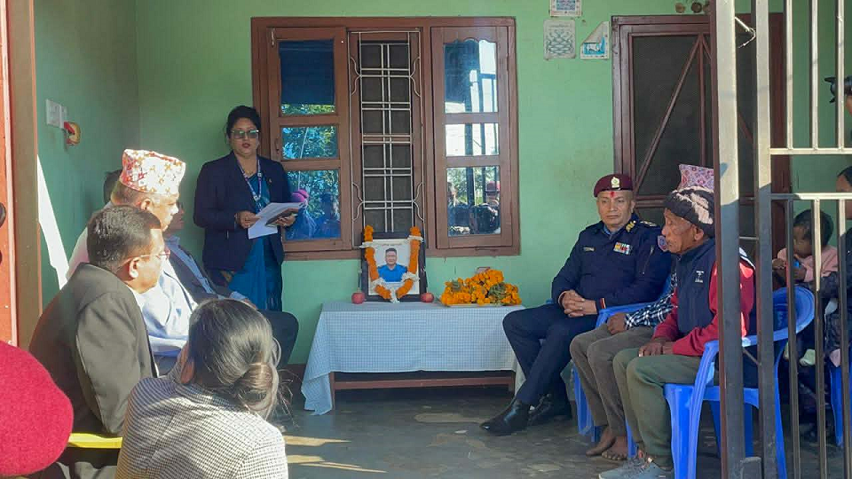 पोखरा । कर्तव्य पालनाको सिलसिलामा काठमाडौंको कोटेश्वरमा ज्यान गुमाएका प्रहरी सहायक हवलदार अमृत गुरुङको परिवारलाई भेट्न गृहमन्त्री र प्रहरी महानिरीक्षक (आइजिपी) घरमै पुगेका छन् । ‘जेनजी’ आन्दोलनका क्रममा भएको हिंसात्मक झडपमा मारिएका अमृतको परिवारलाई समवेदना दिन आइतबार उच्चस्तरीय सरकारी टोली कास्कीको रुपास्थित अमृतकै घरमा पुगेको हो ।