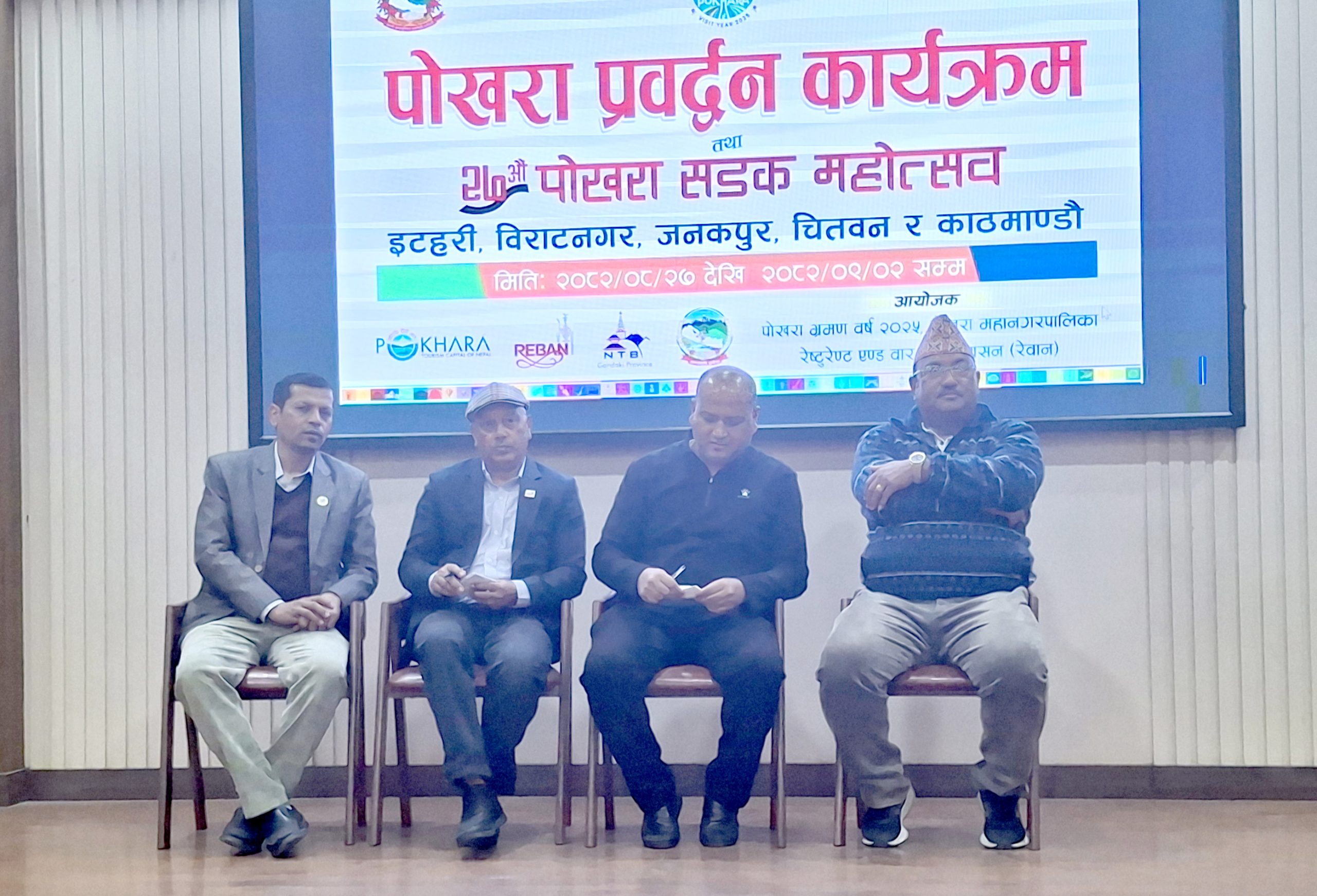 पोखरा भ्रमण वर्ष २०२५ र आउँदै गरेको २७ औं पोखरा सडक महोत्सवको प्रचारप्रसार एवं प्रवद्र्धन गर्ने उद्देश्यका साथ पूर्वी नेपाल आएको पोखरेली पर्यटन व्यवसायीको टोलीले नेपालको पूर्वी सहर विराटनगर र इटहरीमा पत्रकार सम्मेलन गर्दै पूर्वेलीलाई पोखरा घुम्न निमन्त्रणा गरेको छ ।