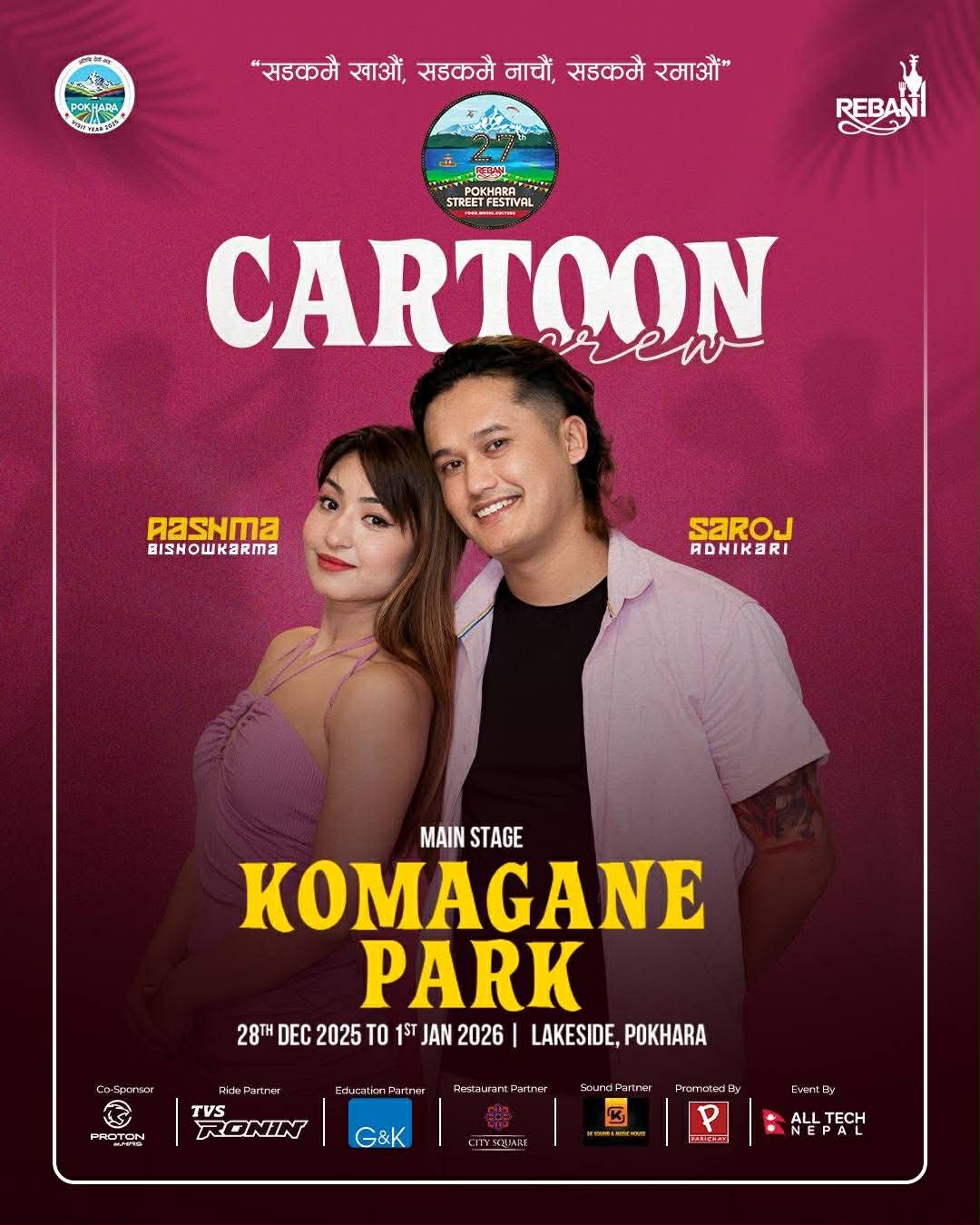पोखराको कोमागाने पार्कमा हुने सांगीतिक उत्सवमा यसपालि विशेष रौनक थपिने भएको छ । पोखरा सडक महोत्सव अन्तर्गत हुने ‘न्यूइयर इभ’ को विशेष कार्यक्रममा चर्चित डान्सर आस्मा विश्वकर्माको प्रस्तुति हेर्न पाइने भएको हो । रेवान पोखराले आयोजना गरेको महोत्सवको लेकसाइड क्षेत्रमा हुने सांगीतिक माहोल तताउन कार्टुन क्रुजकी आस्मा पोखरा आउने भएकी हुन् ।