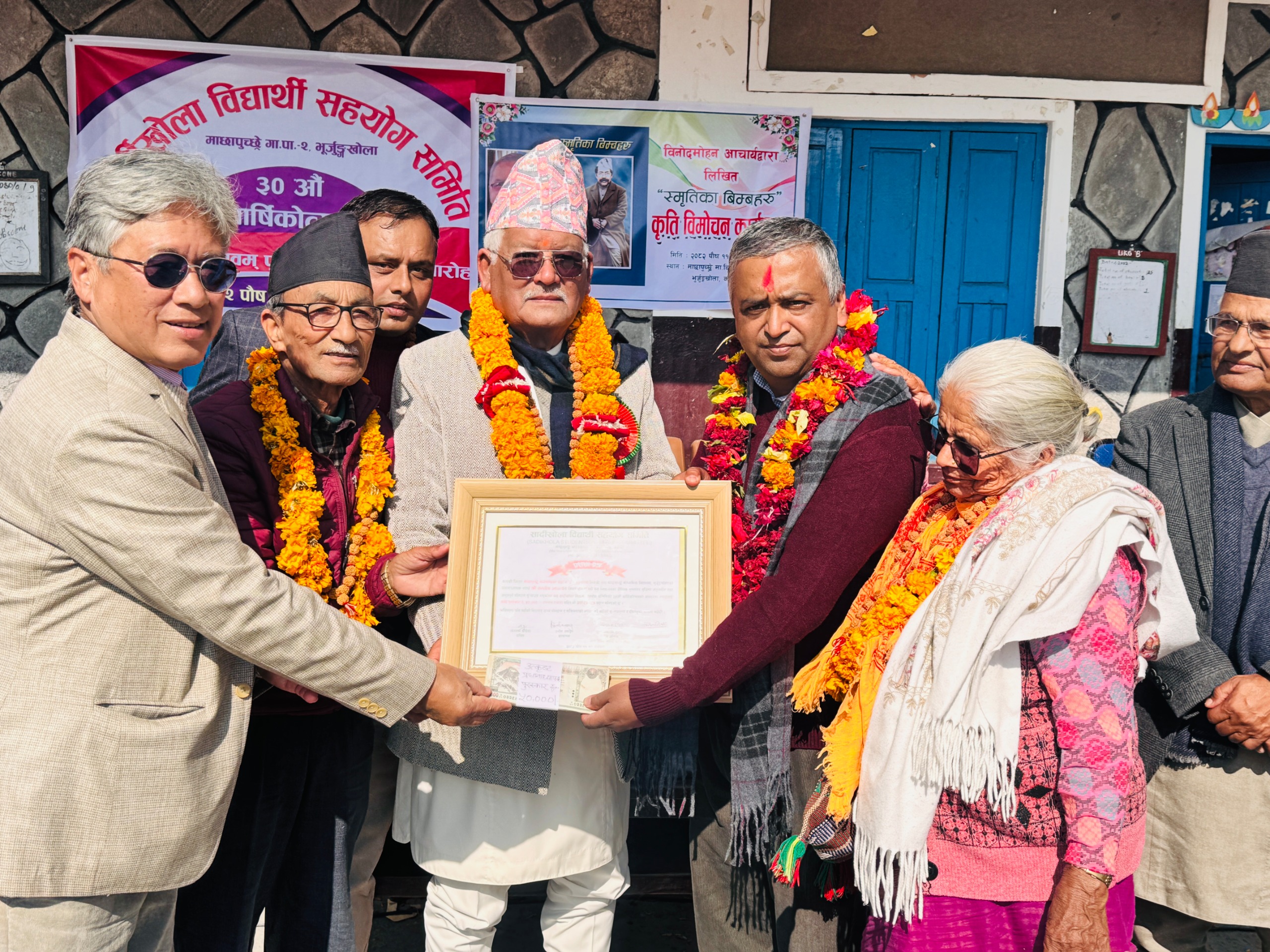 शुक्रबार आयोजितसमारोहका बीच संस्कृतिविद् डा. जगमान गुरुङको प्रमुख आतिथ्यमा समितिले माछापुच्छ्रे गाउँपालिका वडा नम्बर १, २ र ३ भित्रका १२ वटा विद्यालयका कक्षा १ देखि १२ सम्मका गरिब तथा जेहेन्दार विद्यार्थीहरूलाई छात्रवृत्ति रकम प्रदान गरेको छ । सोही अवसरमा माछापुच्छ्रे माध्यमिक विद्यालय भुर्जुङखोलाका प्रधानाध्यापक सन्तोष आचार्यलाई ५० हजार रुपैयाँ राशिसहित विशेष सम्मान गरिएको छ ।
