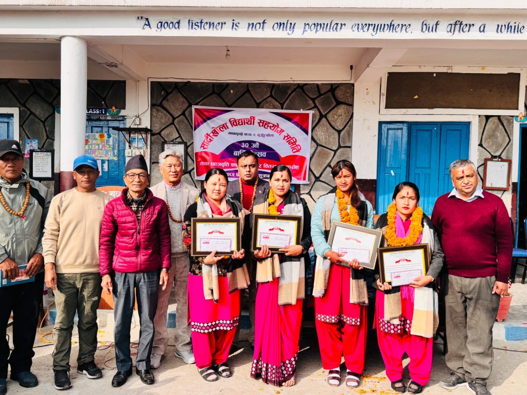 कास्कीको माछापुच्छ्रे गाउँपालिका–२ भुर्जुङखोलास्थित सार्दीखोला विद्यार्थी सहयोग समितिले आफ्नो ३० औँ वार्षिकोत्सवको अवसरमा शिक्षक सम्मान तथा छात्रवृत्ति वितरण गरेको छ । समितिले गाउँपालिकाका विभिन्न विद्यालयका २ सय ६० जना जेहेन्दार विद्यार्थीलाई ७ लाख ४२ हजार रुपैयाँ बराबरको छात्रवृत्ति वितरण गर्नुका साथै उत्कृष्ट शिक्षकहरूलाई नगदसहित सम्मान गरेको हो ।