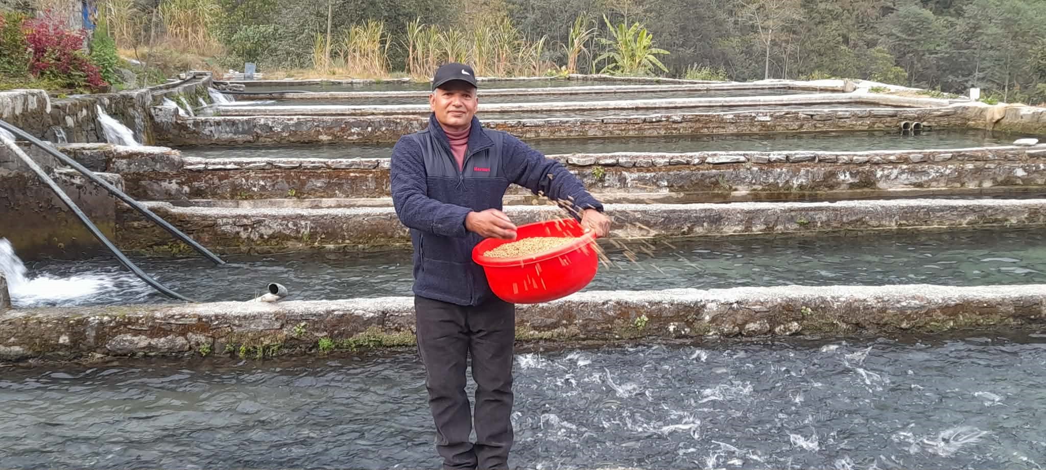 विकट गाउँमा रेन्बो ट्राउटपालन गर्दै पूर्वप्रहरी विकास