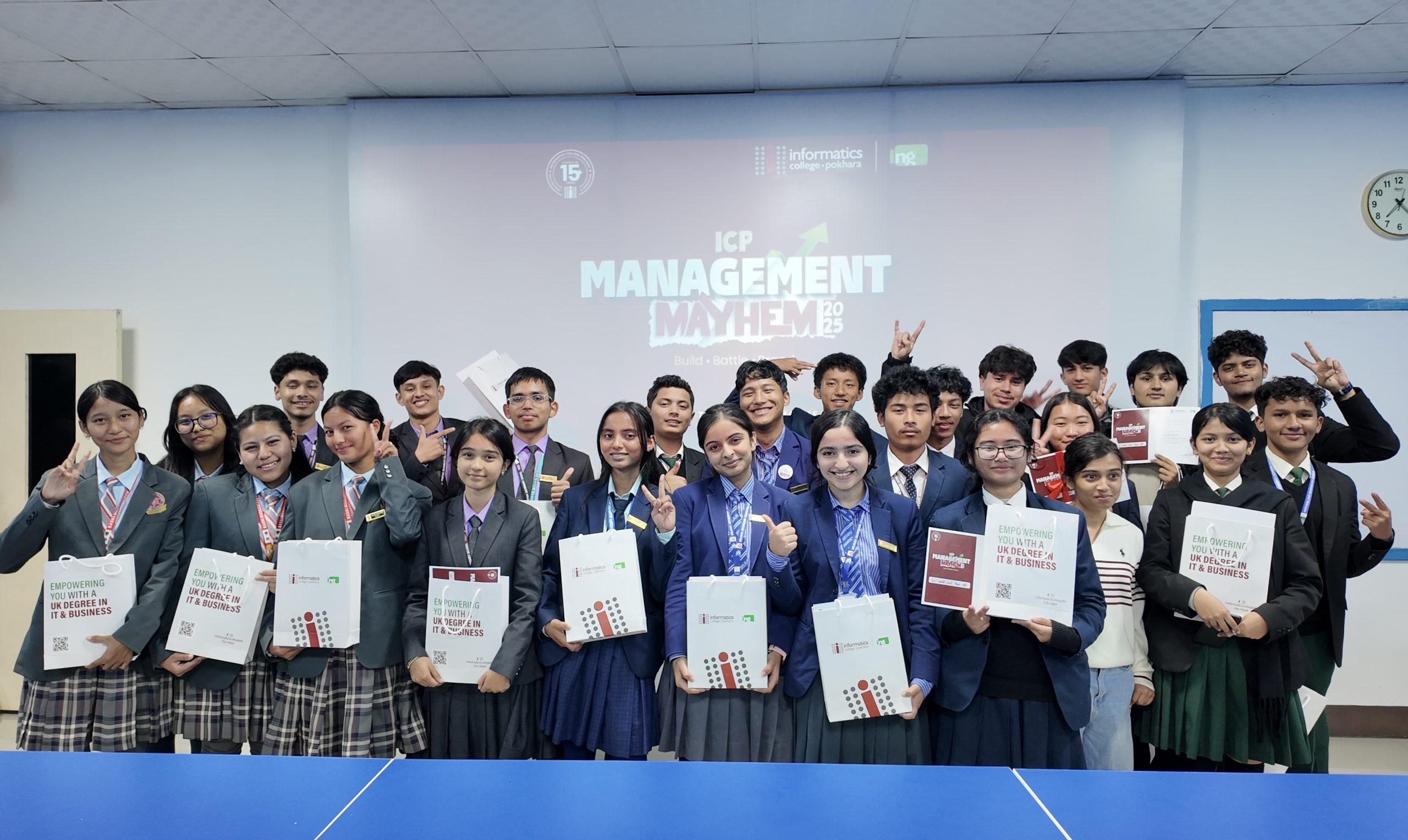 पोखरा । पोखराको इन्फरमेटिक्स कलेजले आयोजना गरेको अन्तर–कलेज व्यवस्थापन प्रतियोगिता ‘म्यानेजमेन्ट मेहेम २०२५’ मा मदरल्यान्ड सेकेन्डरी स्कुलले जित हासिल गरेको छ । माटेपानीस्थित कलेज परिसरमा पुस १२ मा भएको प्रतिस्पर्धामा मदरल्यान्डकै दुईवटा टिमले क्रमशः विजेता र उपविजेताको उपाधि हात पारे ।
