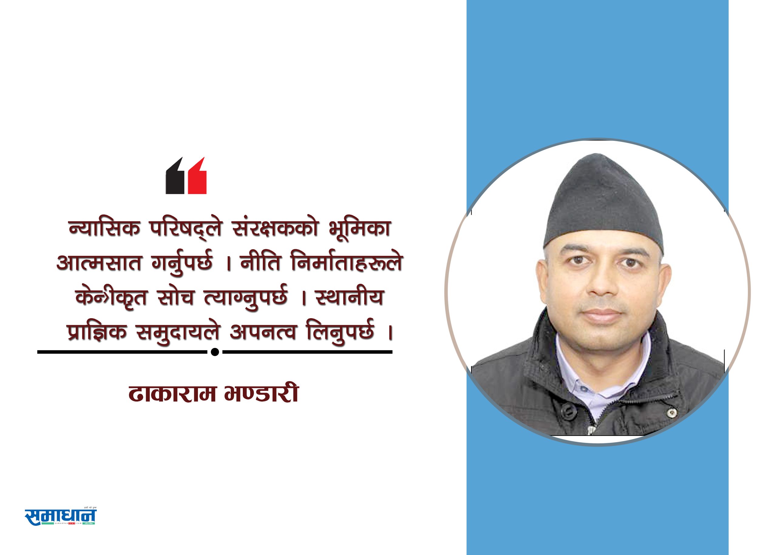 जसरी लोकतन्त्रको विकल्प अर्को कुनै तन्त्र नभएर अझ सुदृढ लोकतन्त्र नै हो, त्यसरी नै न्यासिक परिषद्को विकल्प थप सक्षम, पारदर्शी र जिम्मेवार न्यासिक परिषद् नै हो ।