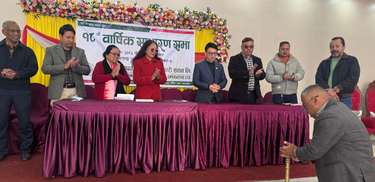 पोखरा । पोखरा ८ मा रहेको शुभ सिद्धार्थ बचत तथा ऋण सहकारी संस्थाको १८ औँ वार्षिक साधारण सभा शनिबार सम्पन्न भएको छ । संस्थाका अध्यक्ष विनोदप्रसाद श्रेष्ठको सभापतित्वमा भएको सभाले सेयर धनीहरूका लागि लाभांश वितरण गर्ने प्रस्तावलाई अनुमोदन गरेको छ । सभामा अध्यक्ष श्रेष्ठले संस्थाको वार्षिक प्रगति प्रतिवेदन प्रस्तुत गरेका थिए ।