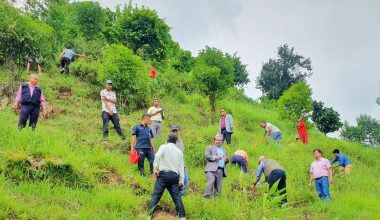 तिव्रेकोट सामुदायिक वनमा डिभिजन वन कार्यालय कास्कीकाे वृक्षाराेपण