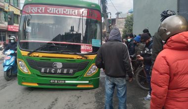 पोखराको नदिपुरमा हिँडिरहेकाे नगर बसको पाङग्रा जमिनमुनि गड्यो