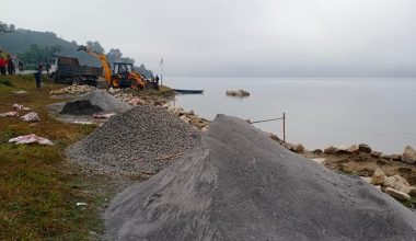 पानी घटेको मौका छाेपेर कागजी सम्झौता लत्याउँदै पर्खाल निर्माण