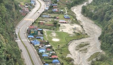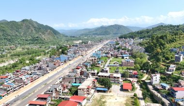 पृथ्वी राजमार्ग र पृष्ठभूमिमा देखिएको माछापुच्छ्रे