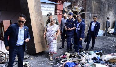 प्रधानमन्त्री कार्कीद्वारा क्षतिग्रस्त प्रहरी कार्यालयको निरीक्षण