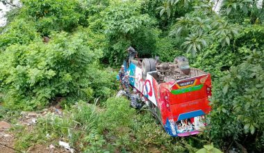 आँबुखैरेनीको ऐनापहरामा बस दुर्घटना, एक गम्भीरसहित ५ घाइते